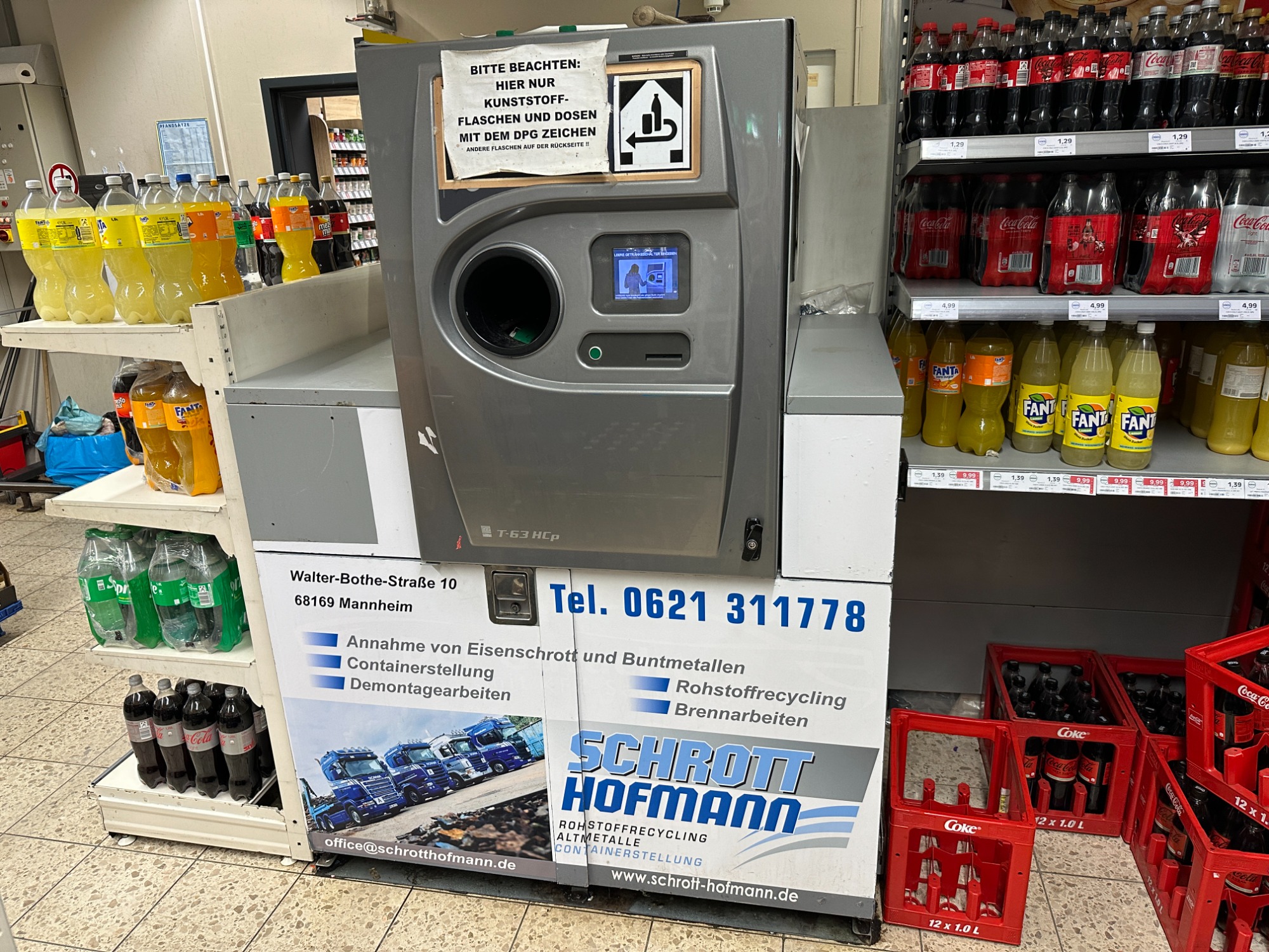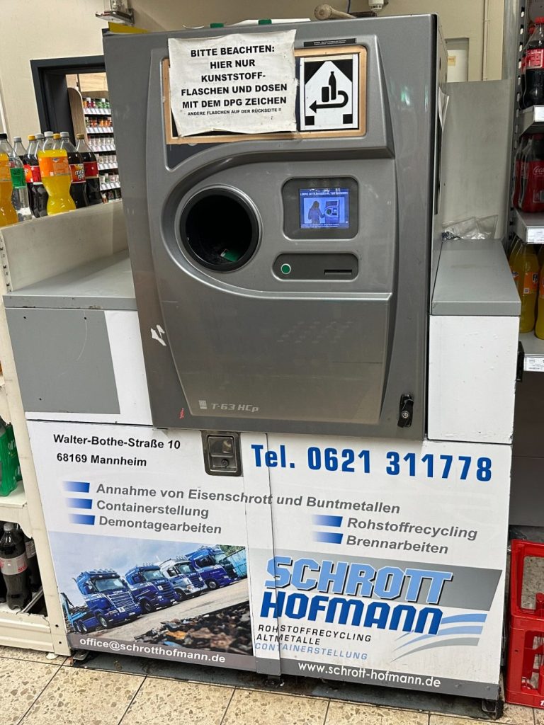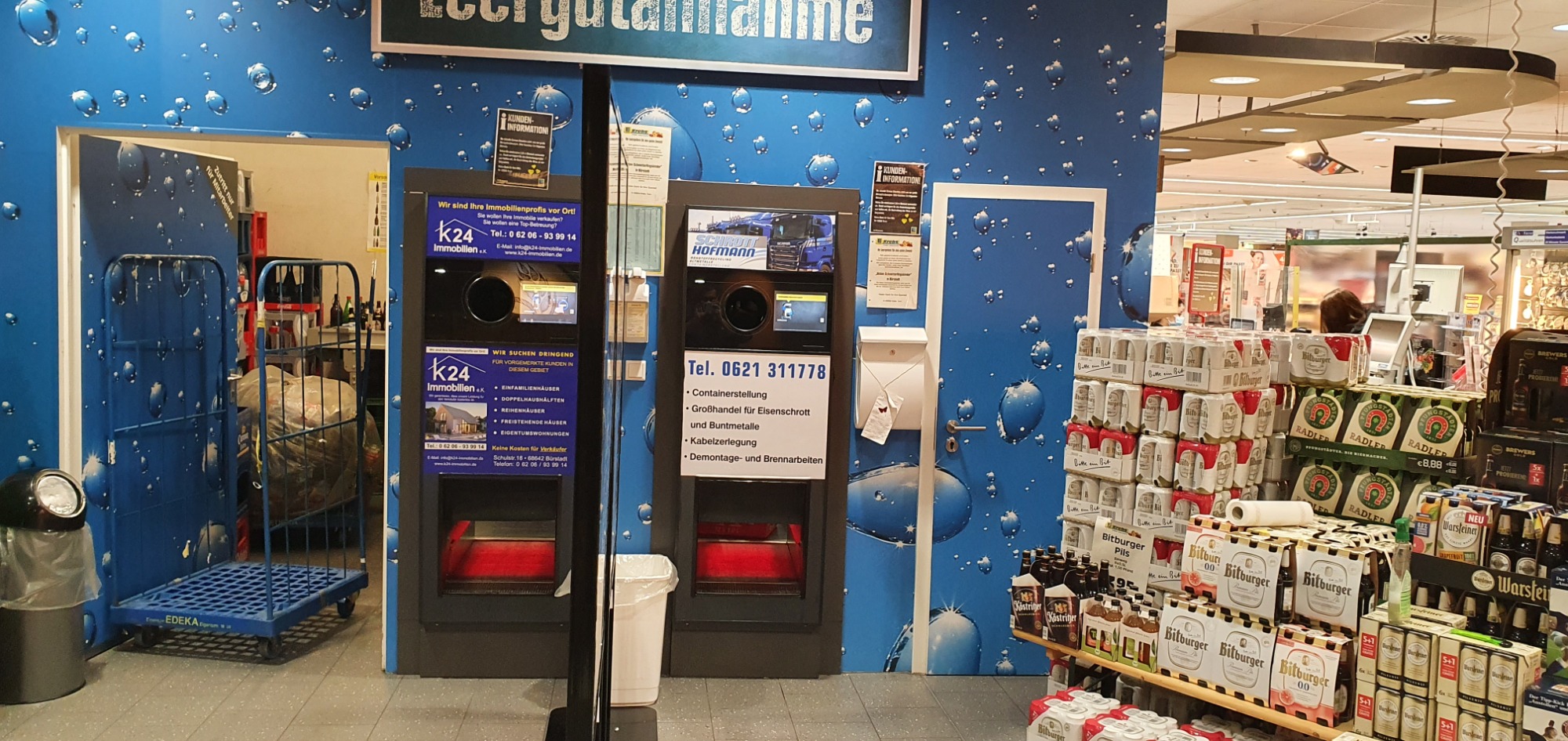 Werbung an Leergutautomaten im EDEKA Röß in Worms