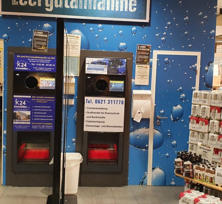 Werbung an Leergutautomaten im EDEKA KREBS in Bürstadt